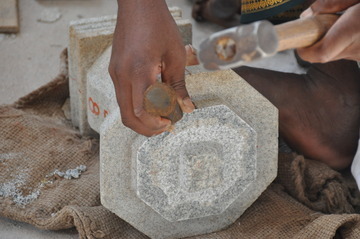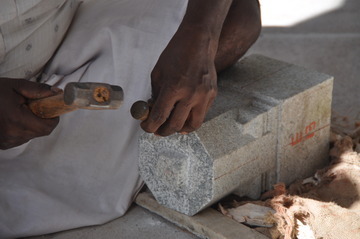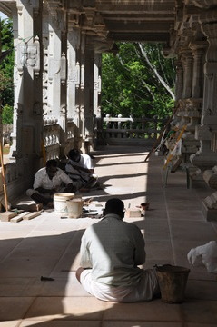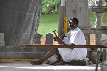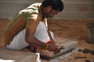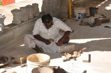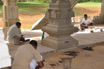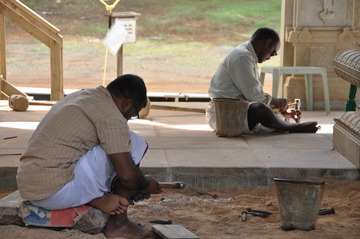 September 27, 2009At Iraivan today the entire six-man silpi team is working together. Here Karuppiah works on the hand railing.