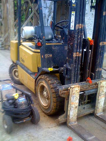 It is traditional to bless your vehicle too. Here the mission critical helper, our forklift and a small pressure washer are blessed.