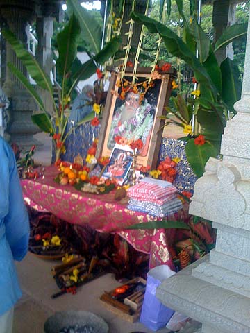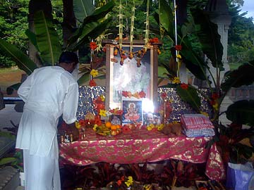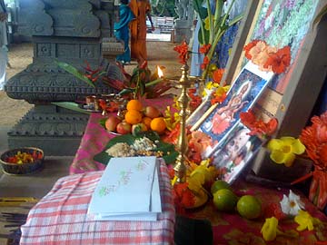 The shrine is beautifully decorated with Gurudeva's picture and that of Goddess Sarasvati who is invoked to bless all the tools