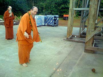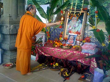 A few minutes earlier, we all gathered as the patrai (black smith forge) to light the fire and this was brought over to the temple and then Bodhinatha performs arati.