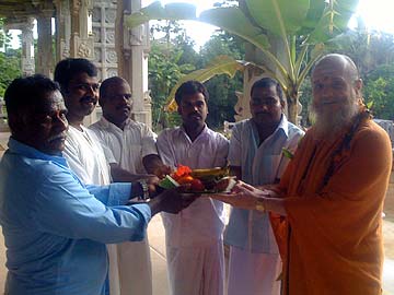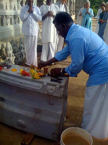 Here the first stone of the Nandi mandapam is presented to be chipped on this auspicious day.