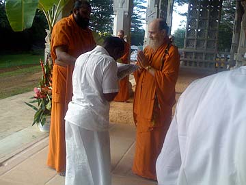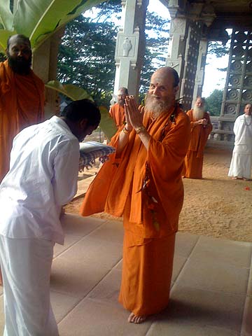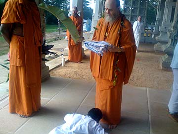 Bodhinatha breaks a coconut and walks through.