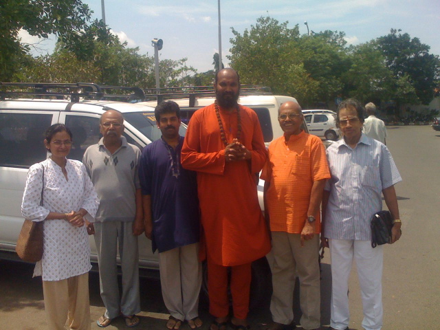 Here is Acharya Arumugaswami and Yoginathaswami being greeted on arrival in Chennai. Left to right, by Sheela Venkatarkrishnan, Gunalan's father in law, Gunalan, me, Nellaiappan, Sabharatanam Sivachariya