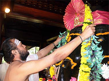 A few metres away offerings are made at the small Ganesha Shrine...