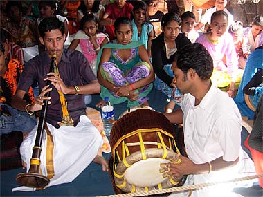 Traditional musicians were hired for this occasion... The youth are delighted to see them playing.