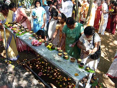 Ladies preparing their oil lamps for offerings.