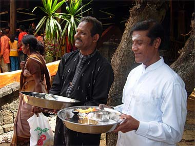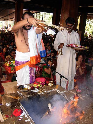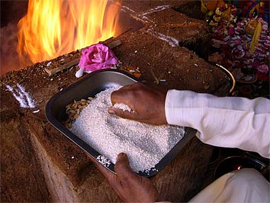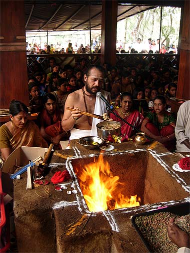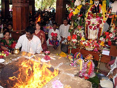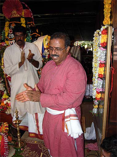 (Left) Kulapati Mougam Periatumbee and Jis Chenngana offering the sacred flame.