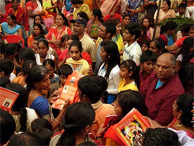 A little rush at the start, during the distribution of the Ganapati copybooks, but finally all the youth with happy faces left the Mandapam.