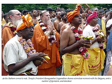We bring you a belated series from Bodhinatha's August visit to the Maryland Murugan temple where he joined in the celebration of the chariot festival there.