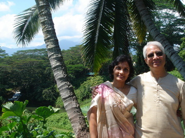 Dr. Kamlesh Thaker and his wife, Chhays Thaker, R.N. pose at the monasterie's famous "Lookout." Dr. Thaker is a cardiologist specializing in the Intensive Care Unit, while his wife, Chhays, is an ICU nurse both serving at the same facility in Houston, TX. They were especially blessed to receive the darshan of Sat Guru Bodhinatha Veylanswami this morning following the puja in Kadavul Temple.