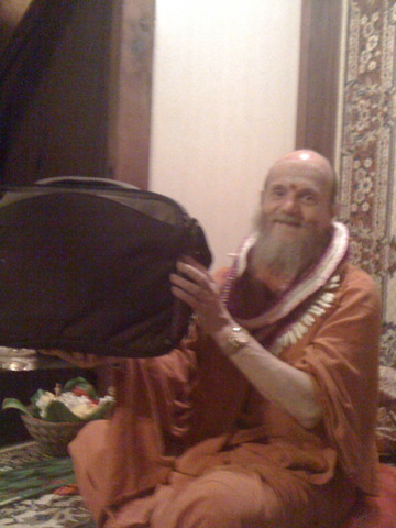 One gift came all the way from Singapore, sent by devotees. A travel computer case that is virtually an office on your shoulder. Bodhinatha will get lots of use of this.