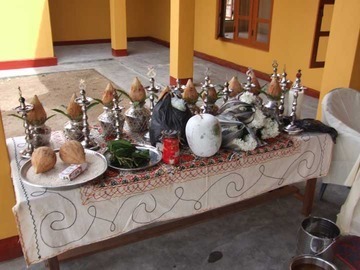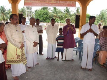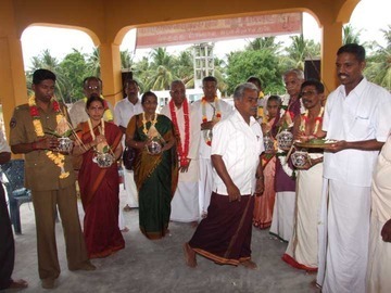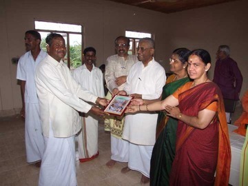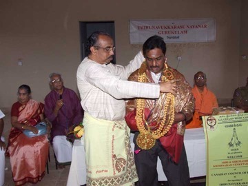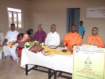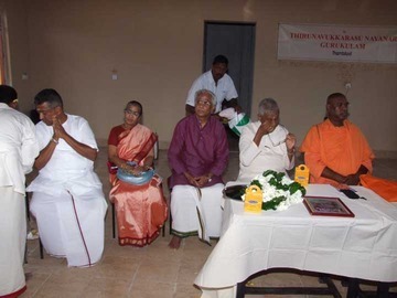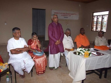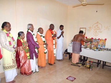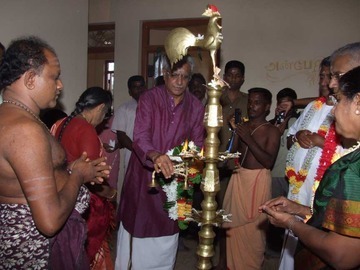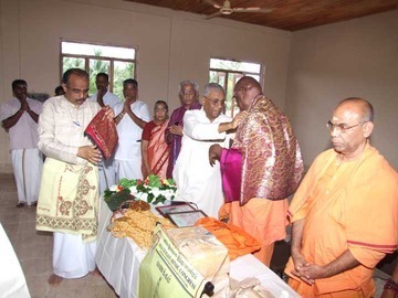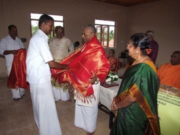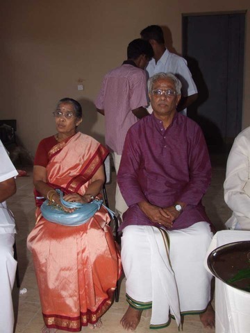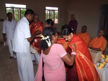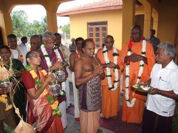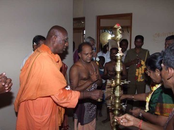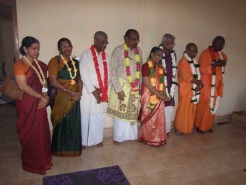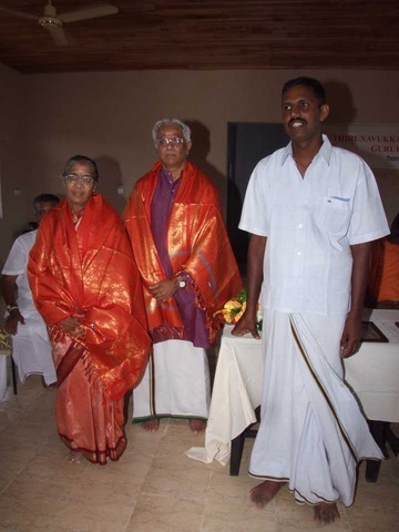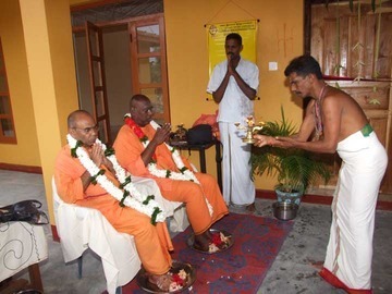 Two swamis graced the event, and Kannan welcomes them in the traditional way.