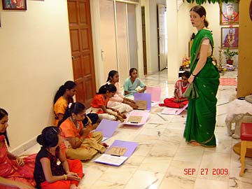 The Sangeetham students are paying attention to their Sangeetham Guru, Tirumati Devika's instruction.