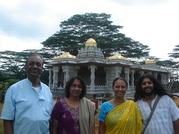 (left) Sahasrananda and Bhaghi Rathy are visiting from Florida for the first time. Present for the morning Siva puja in Kadavul Temple, they found the darshan "absolutely vibrant," and Iraivan Temple "very beautiful in serene surroundings." "It feels like Kailasa." Rishi Kumar Das and Jaya Sri Das felt "it was a blessing to visit and experience the transcendental energy of Lord Shiva's Temple."