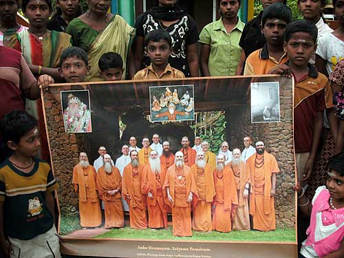 At the Sri Subramuniya Kottam in Jaffna, Sri Lanka, children received a new picture of the monks of Kauai Aadheenam