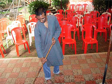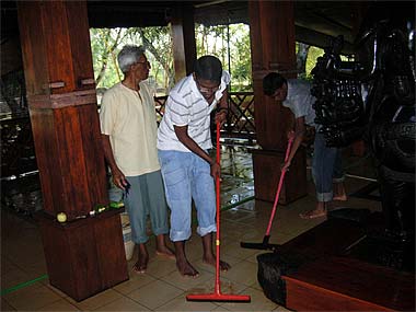 On the eve, everything had to be set up. A happy group of sivathondars were there to clean the brass items to be used in the puja.