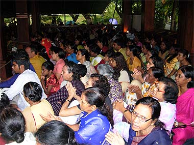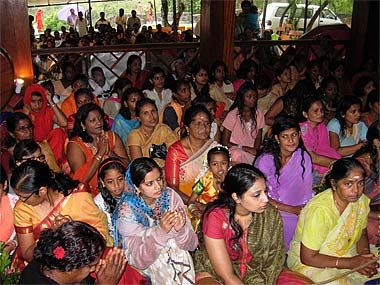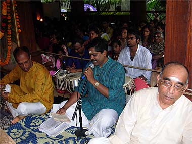 Singing devotional songs to the Gods helps build up a spiritual vibration in the Mandapam.