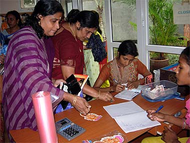 Inside the Mini Mela where devotees come to buy gift items and to offer donations in cash.