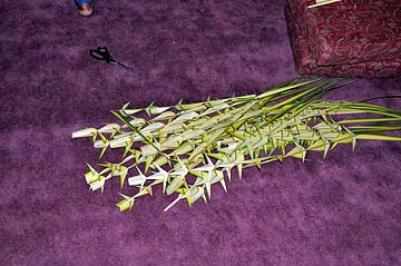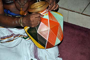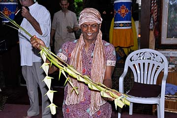 Puvaneswary Roberts from the Netherlands (originally from Malaysia) shaved her head... she help with making coconut frond decorations.