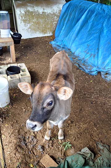 Our young bull, Yitesh, is still too small to let out. But we do tie him each afternoon to a long rope and let him graze and wander some.