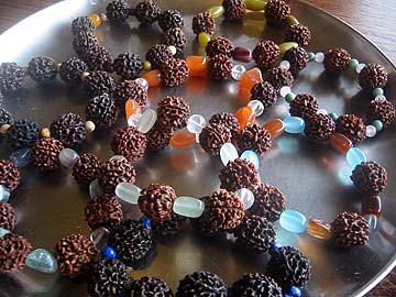 Kulapati Durvasa Alahan who coordinates the Rudraksha Project is sitting with another Himalayan Academy student John Stern. Durvasa reported incredible sales of Rudraksha malas and jewelry over the $3,000.00 mark last month!