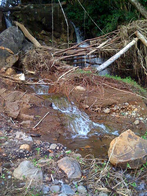 The recent heavy rains and the river's spate put this beautiful area into a shambles. It is amazing how one day of rain can create weeks of work.