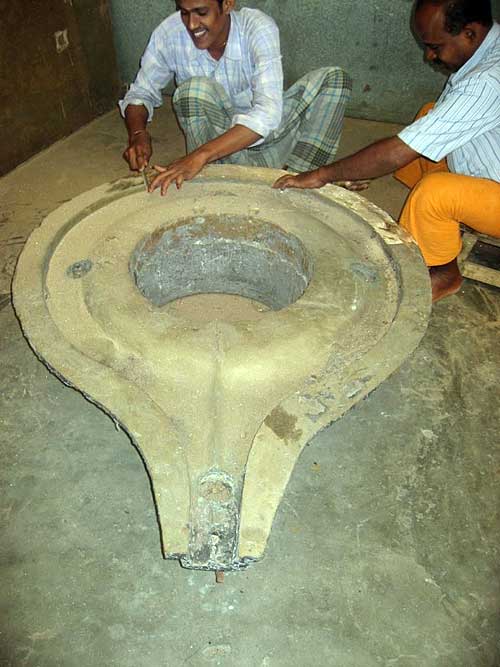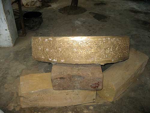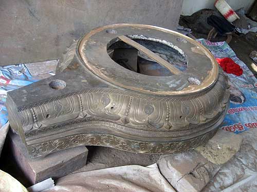With the casting done sometime ago, work continues on the Avudiyar -- base for the Sivalingam of Iraivan.