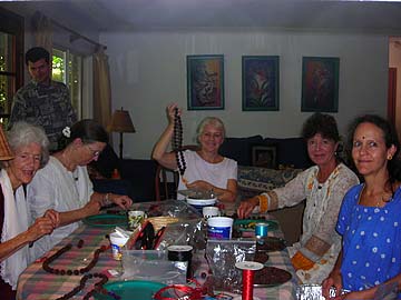 The Wailua Mission ladies preparing for the holiday visitors to the Mini Mela by making rudraksha malas