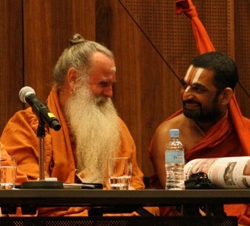 Important swami approaches with impressive retinue, meets us and stops to inquire: