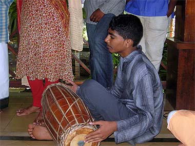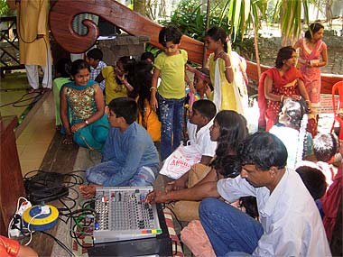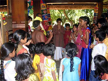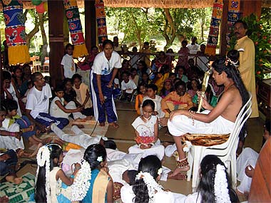 The youth seated on the first level of the Mandapam steps appreciate the event. Due to limited space inside the Mandapam we could not set up a proper stage, and performance were done in an informal way to the joy of everyone present.