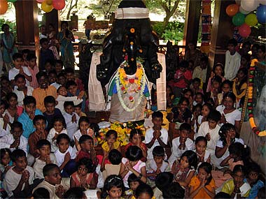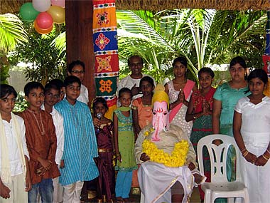 Lots of sweets from devotees offered at the Holy Feet of Lord Ganapati. The youth were really spoilt.