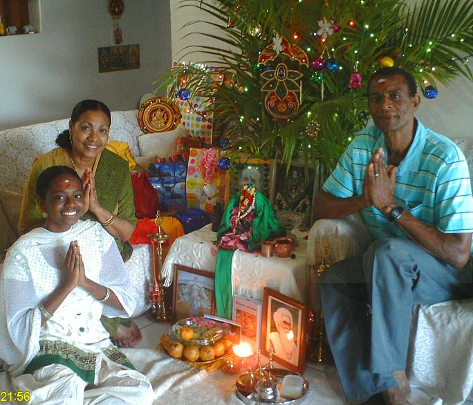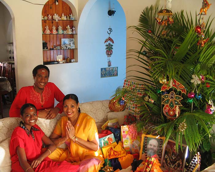 Master course student Toshadevi, her husband Fremont, daughter Lily and brother Vanore (behind the camera) celebrate Pancha Ganapati in their home in St. Lucia.