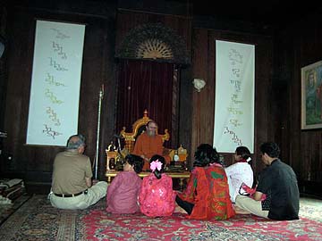 The Lals and Agrawals listening attentively to Bodhinathaa's answers to their questions.