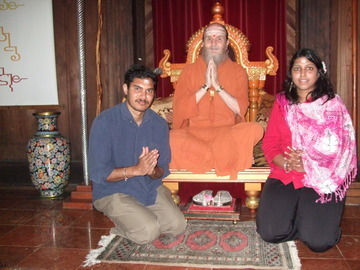 Thushyanthan Amirthalingam, from Calgary, with his mom Yogaalar and wife Renuka. He's studying Gurudeva's Master Course.