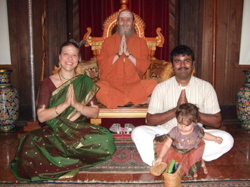 Girish Haran, Girija Yegnanarayanan and sons from Boston. They asked how they could spiritualize their lives and Bodhinatha shared some thoughts from an article he's working on. We can help others in small ways during the course of the day in the workplace or in school. We can perform all work with the aim of reaching God. Rather than thinking of one's occupation as a secular activity we can view what we are doing as an offering to the Lord. All of life is sacred.