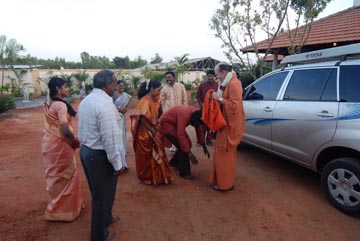 Saturday evening is for visiting the Iraivan Temple carving site. Here Bodhinatha is greeted.