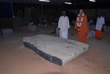 This stone is for the "Ya" step of Iraivan temple. The original carved step was done incorrectly--too small in a critical dimension, and has to be redone.