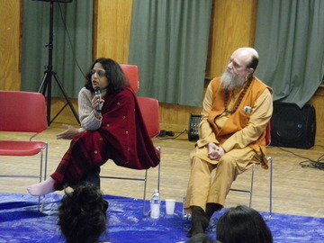 Everyone loved the devotional music. Rather than considering it a performance, where an audience would face the musicians, they asked everyone to turn toward the shrine with Ganesha and Radha-Krishna, and proceeded to lead the group in a number of exciting Hindi bhajans, Kawali style. They even had the monks singing along! "Raghupati Raghav Raj Ram..." After the bhajans everyone got dressed up in their best Hindu punjabi and kurta outfits for some enlightening and dynamic discussions, then a night of Bollywood dancing. (Yes, the monks skipped the dancing.) Thanks to the HSC for putting on such a great program. It was a lot of fun, and it clearly was of great benefit to all who attended.