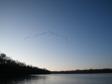 Beautiful flocks of birds were seen flying in formation above the lake at Fort Parker just before sunrise.