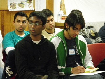 They asked a lot of great questions! In the center sitting on the floor is the main organizer of the retreat, Ramya Ravi, a biomedical engineer from Houston. Sitting behind her is another of the organizers, Atul Agrawal, a senior at University of Texas at Austin.