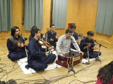 The Saturday evening program included a wonderful innovation: Hindu Kawali! (Kawali is traditionally an Islamic music style.) Sonny Mehta, looking fiercely devotional, leads the song while playing the harmonium. They are young and full of energy, and very talented!