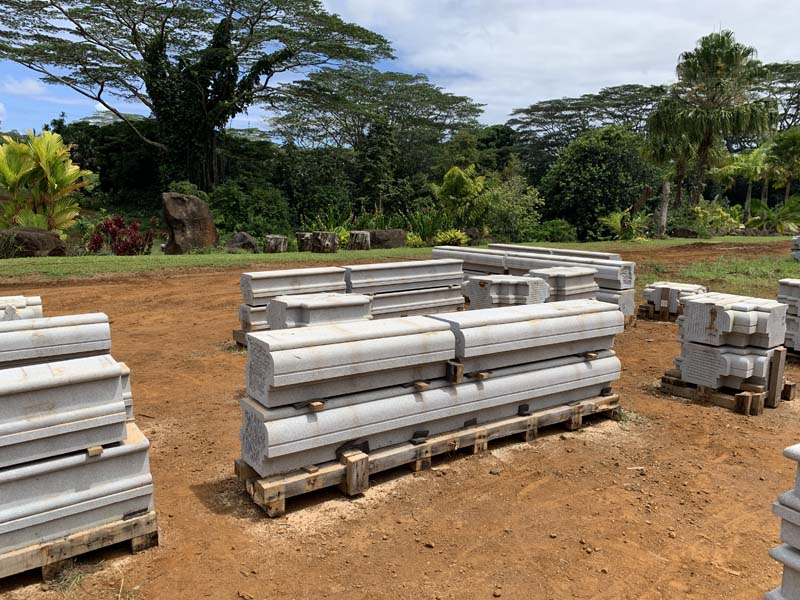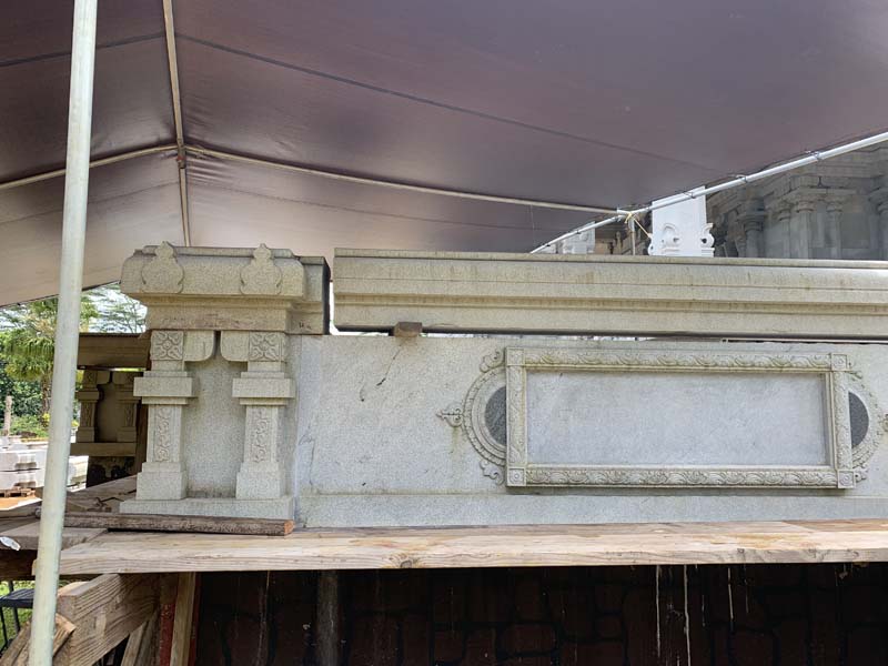 August 19, 2019Today we are seeing the second layer of Iraivan Temple's perimeter wall take shape. This layer of stones cover the entire length of the wall. Atop each smaller tower caps will sit polished rose granite pots.