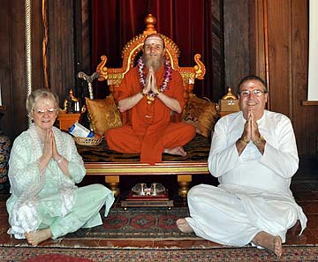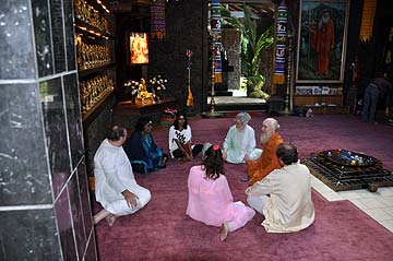 Paramacharya Ceyonswami talks with guests in the temple.