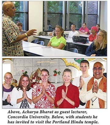 Students who show enthusiasm are invited to first read the booklet, Visiting a Hindu Temple then come experience puja, bhajan, meditation and prashadam at Portland's Hindu temple. Many then come back later, on their own, to pray and meditate. "They delight to see Hinduism in action," concludes Acharya, "and I can read the genuine enthusiasm in their term papers."