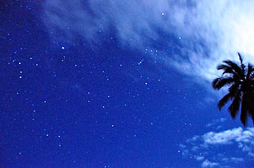 An inspired photographer took this long-exposure shot of the Aadheenam sky, a privilege for monks only (except on Sivaratri night). Siva's universe is so vast, yet so simple. On the right, you can see all the stars of Orion. The bright star on the upper left is Sirius, a binary system that looks like only one star from earth, but orbiting Sirius-A is no planet but actually... another star, Sirius-B.