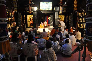 The temple was full. Later, a wonderful group of Sri Lankans had darshan with Bodhinatha. Many photos tomorrow!