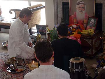 Father and son perform pada puja to our Parampara. Jothi Param, our oduvar-in-residence, sang devotedly.