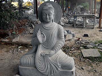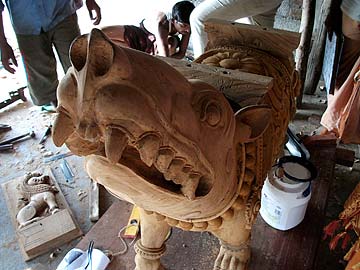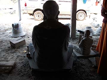 Arriving at the workshop we see the Parampara statues are coming along just fine. The detail of the work is one of our main concerns. Bodhinatha's murthi--work in progress.