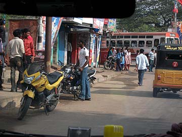 Here we are on the road to the next workshop. We thought you would enjoy seeing the busy streets of Mahabalipuram, everywhere you go there is something going on.