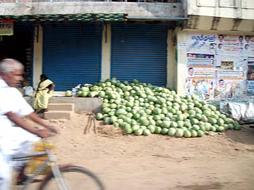 This is the biggest pile of watermelons we ever seen, there must be over 500.